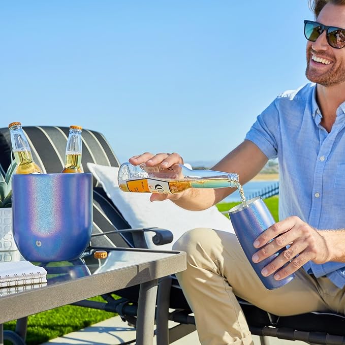 - Lasting Chill Stays Inside: How does the ice stay intact for so long in your SNOWFOX ice bucket? What sets it apart is how the double walls are vacuum insulated, ensuring items inside stay frosty much longer than a standard ice tub. Our unique design also keeps the outer walls dry and comfortable to the touch. You can carry your bucket without concerns it will leak or slip and slide. Counters and tabletops stay puddle-free without condensation buildup or drips.