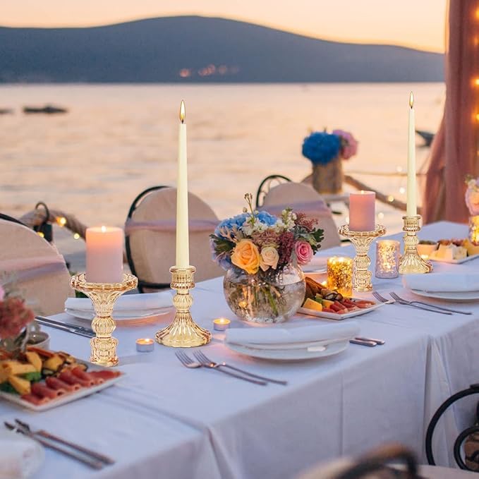 Candlestick Holders Set, 4" H Taper Candle Holders Bulk, 12Pcs Gold Glass Candle Holders for Wedding, Festival, Party & Windowsill Decor