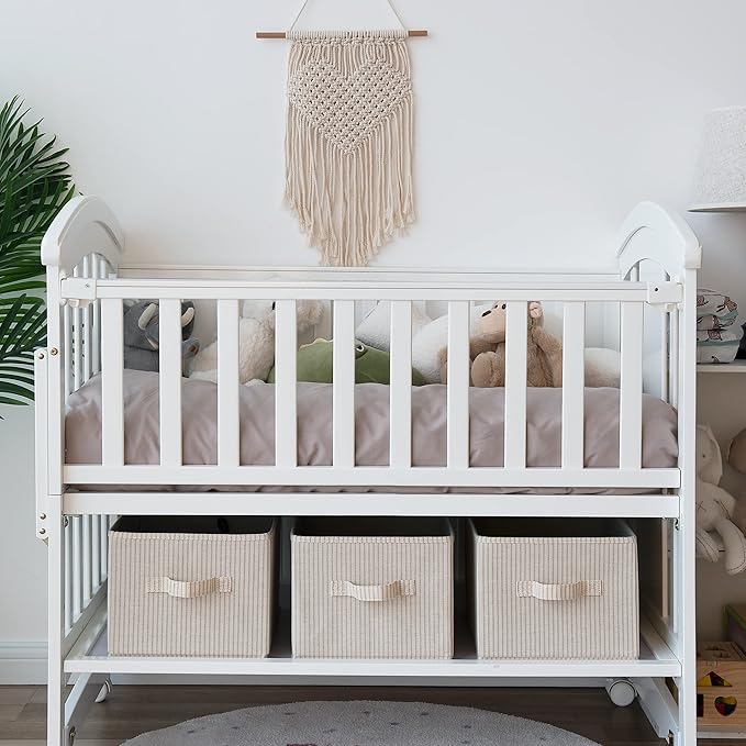 - The polyester-canvas fabric and the inserted heavy-duty boards of the storage bins allow them to support a weight of up to 25 pounds.
