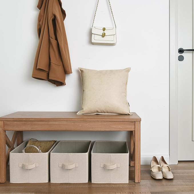 StorageWorks Storage Baskets for Shelves, Foldable Fabric Closet Storage Bins with Handles, Fabric Storage Bins Clothes Organizer, Beige Stripes, 3-Pack, Large