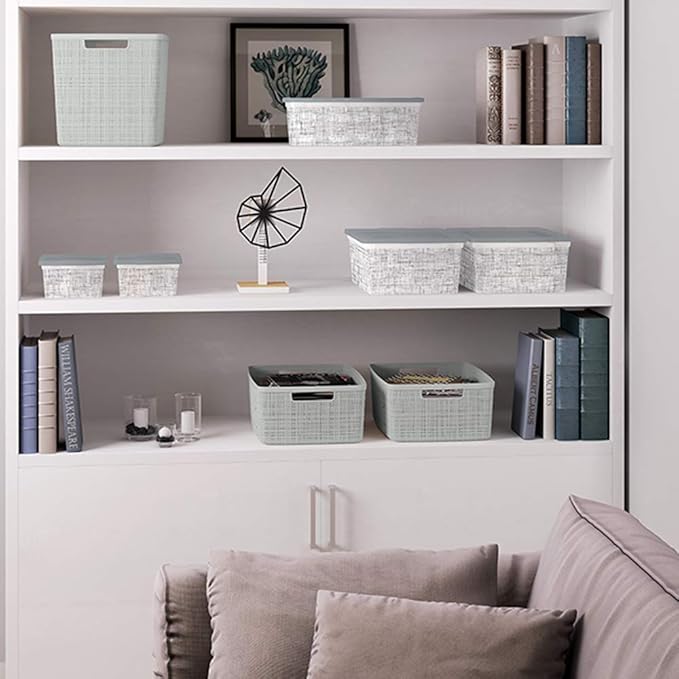 Curver Jute Decorative Plastic Organization and Storage Basket Perfect Bins for Home Office, Closet Shelves, Kitchen Pantry and All Bedroom Essentials, Small, Grey, Set of 8