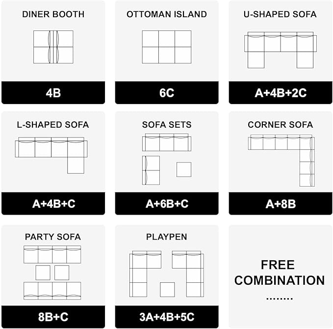 - Human-oriented Backrest& Armrest: The backrest and armrest of the modular sofa couch can be adjusted to the angles within 135°and the armrest is the same as backrest which means there is no need to distinguish which one is the armrest or backrest. Greatly increase the fun of assembly.
