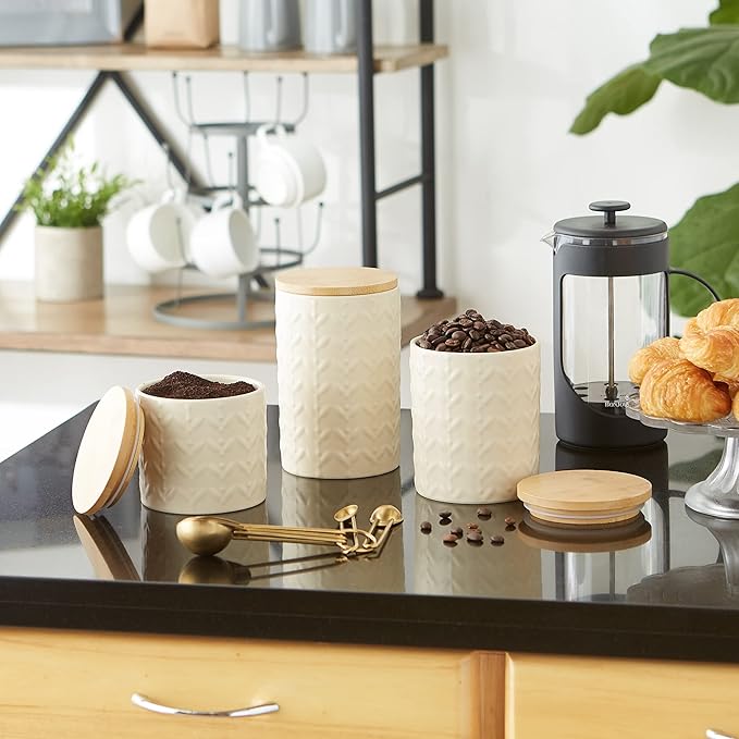 DII Kitchen Accessories Collection, Textured Matte Ceramic Canister Set, Antique White, Vine, 3 Piece