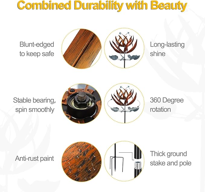 - 【Combined Durability with Beauty】LimeHill metal garden wind spinners are crafted from sturdy material to last for seasons to come, extremely detailed and impeccable Craftsmanship.