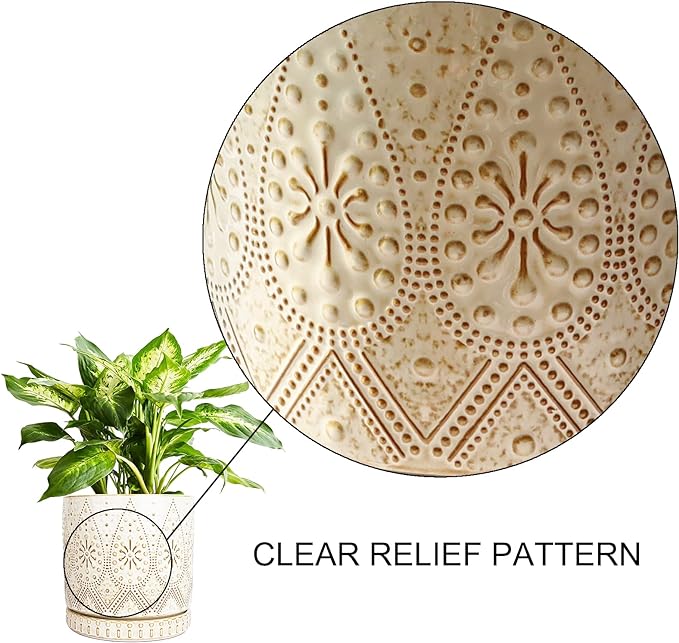 - Size & Package : 8 Inches plant pot. Package: contains 1 ceramic flower pots, 1 ceramic saucers and 1 mesh pads(NOT INCLUDE PLANTS)