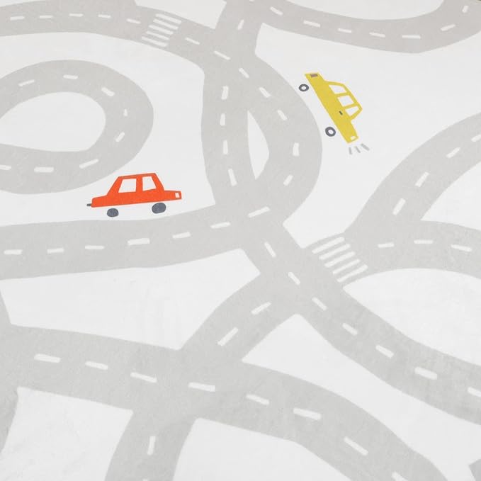 - GREAT FOR KIDS ROOM:Perfect as a custom rug for a racing game themed nursery or kids room, or if your kids love cartoon toy car decor,this white area rug is the perfect choice.The secret to a lovely bedroom and playroom starts with the playful style of this decorative playmat.