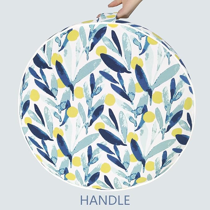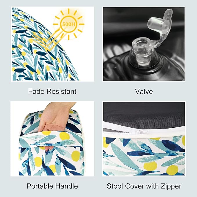 LVTXIII Outdoor/Indoor Inflatable Stool Ottoman, All Weather Patio Footrest Pouf, Portable Round Ottoman for Patio Garden, Camping or Home, D21xH9 Inches, Blue Leaves