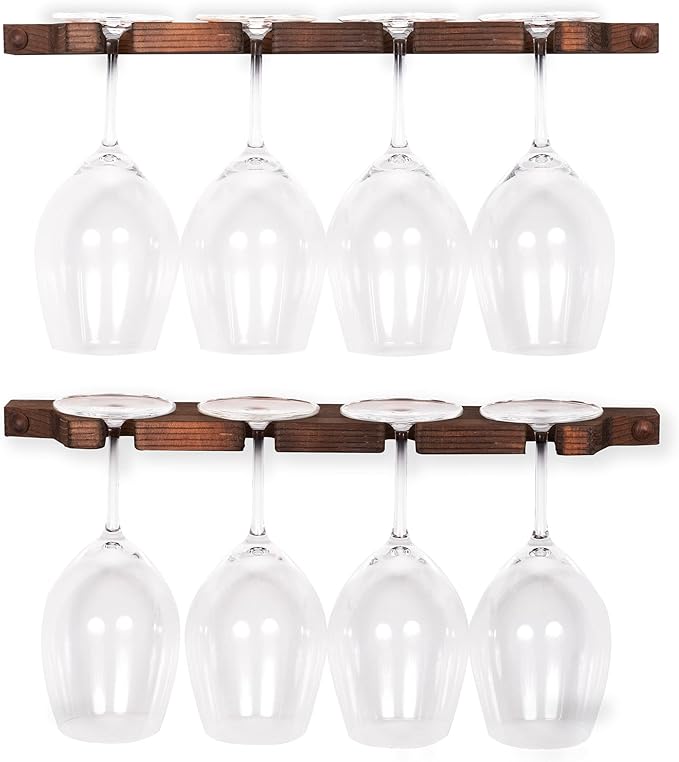 - Stemware Display with Easy Installation : With the beautifully crafted wine glass storage rack, you can display your antique, vintage or hard to find fluted glasses to make yourself happy every time you walk into your kitchen. This rack also can be used for wine bottle storage. Dimensions of each rack L 17" D 3 1/8" H 3/4"