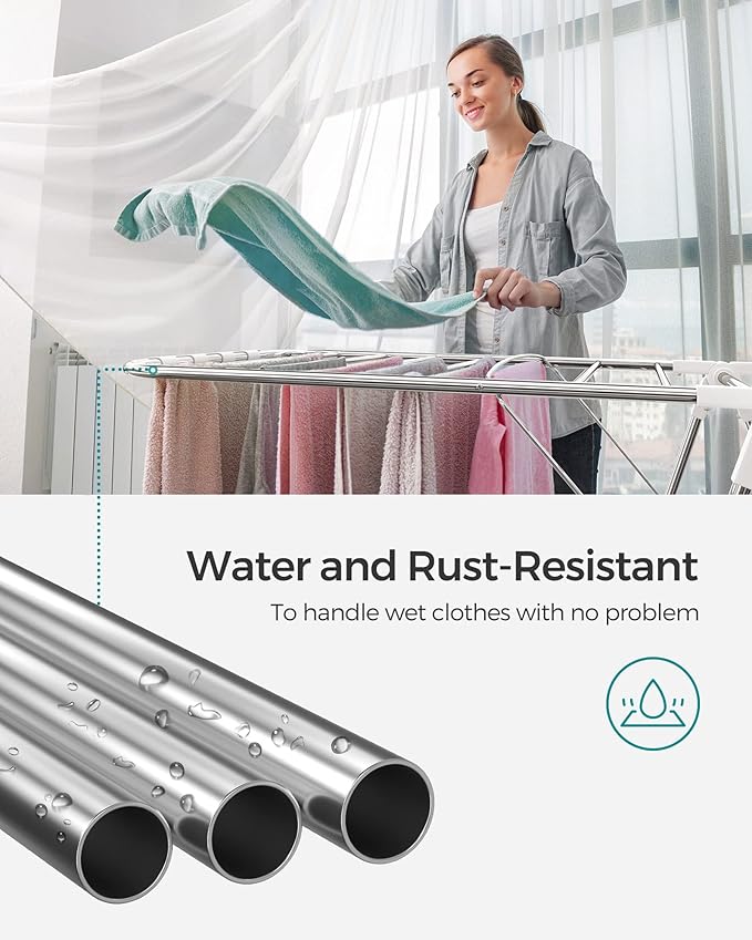 - [Rust-Resistant & Heavy-Duty] Boasting thick steel tubes with a specially treated finish and durable plastic connectors, this clothes drying rack is capable of holding up to 55 lb. You won't have to worry about it buckling or rusting over time