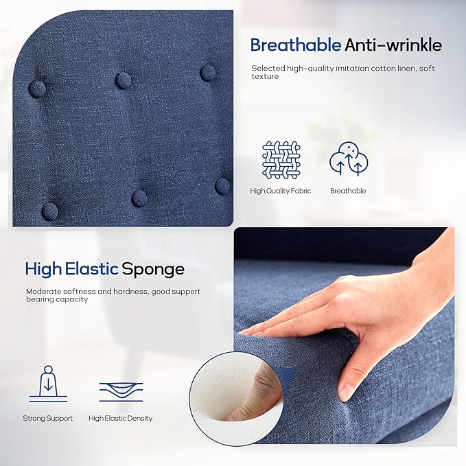 HUIMO Accent Chair Living Room Chair, Upholstered Button Tufted Armchair, Linen Fabric Sofa Chairs for Bedroom, Living Room, Mid Century Modern Comfy Reading Chair (Dark Blue)