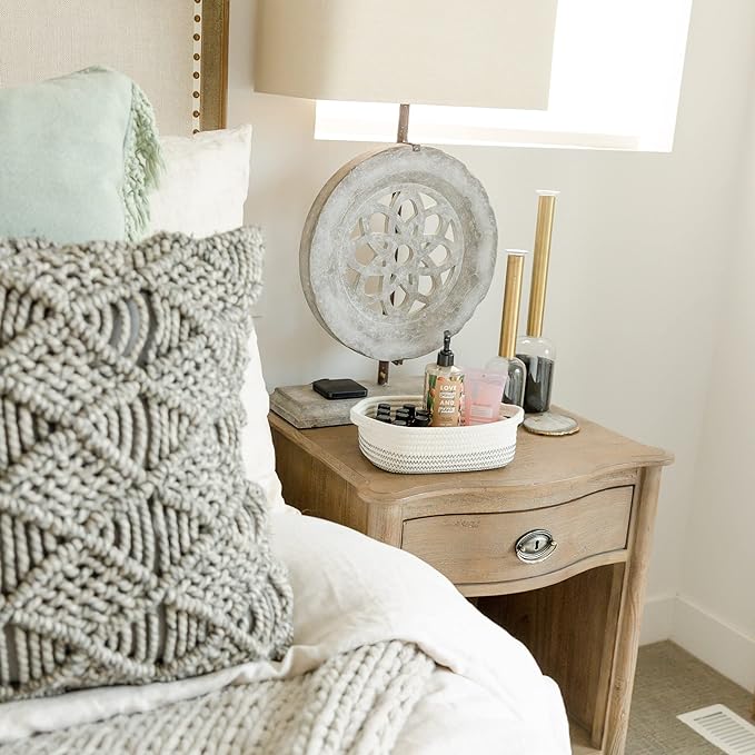 - DOUBLE REINFORCED & SCRATCH-FREE DESIGN: When you’re a full-time mom or dad, you need a storage solution that works just as hard as you do. With reinforced stitching on the handles and base, our woven storage basket set is ready to tackle some heavy-duty actions and will sustain the roughest toddler play. With our soft yet firm handwoven rope basket designs, you’ll never have to worry about scratches or marks being left on your coffee table, shelf, front door table, nightstand or any tabletop.