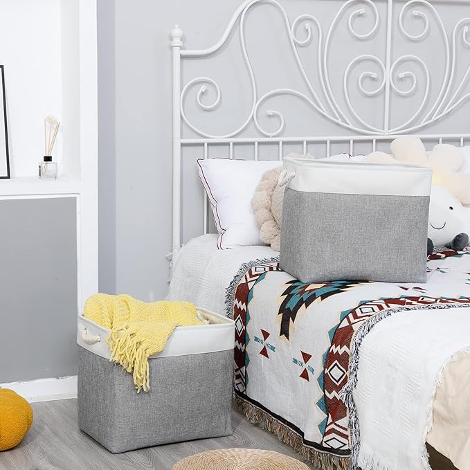 - [Cotton Rope Handles&Premium Fabric] Lightweight storage baskets with cotton rope handles, easy to move and more comfortable grip. Sturdy soft handles on both sides are convenient to retrieve from shelves. These storage baskets are made of durable fabric which is strong and lightweight
