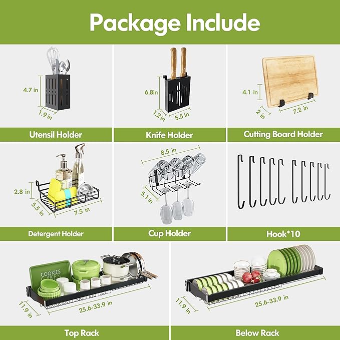 - đź§° DIY Friendly Assembly with Tools: Includes a hex key and step by step visual guide for straightforward installation. Predrilled holes let you mount the sink dish drying rack horizontally above the sink without permanent alterations, perfect for renters or those avoiding wall damage. No technical skills required, assemble in minutes