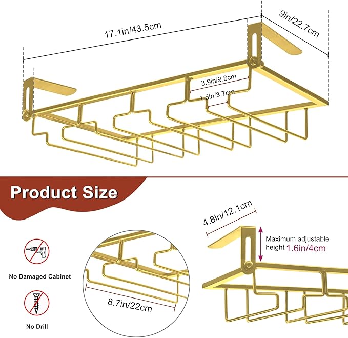 - 【Space Saving】Compact wine glass rack can be hang under any kitchen cabinets, save so space while displaying your glasses! Adds elegance taste to your home or bar's decor, as well as a best gift for wine lovers.