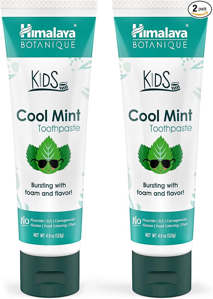 Himalaya Botanique Kids Toothpaste, Herbal, Cool Mint Flavor, Fights Plaque, Fluoride & SLS Free, Gentle, No Artificial Colors, Gluten & Cruelty Free, Vegan, Foaming, 4 Oz, 2 Pack