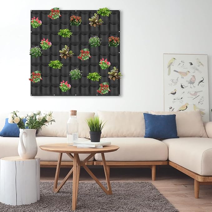 - {Package Included}: 1* 72 pockets Hanging Planting Grow Bags. Size: 100 cm x 100 cm. Strawberry Planters Bag, Wall Planters for Outdoor Plants, Vertical Garden Wall Planters, Living Wall Decorating Planting Bags.