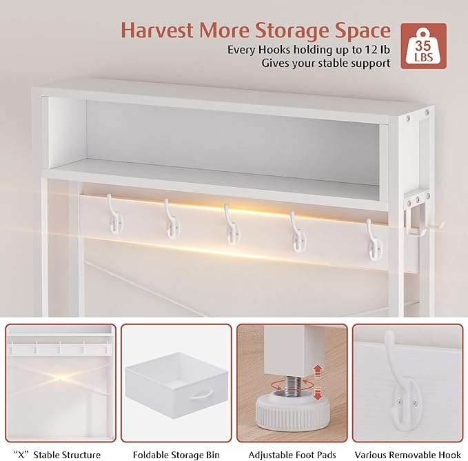 - Stable and Safe: Adjustable foot pads are equipped at the bottom so that entryway coat rack can stand perfectly stable on carpets or uneven floors. Meanwhile, the hall trees with an X rack and 2 anti-tips allow the whole more safe to prevent it from falling and keep safety of the family. After 15-20 minutes of installation, then have a multi-functional coat and shoe rack.