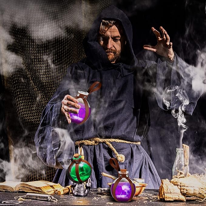 - Package Content: the package comes with 2 pcs round cork bottles, 2 pcs medieval knight artificial leather belts, a good combination that will help you add ambiance to most witch or wizard related costume