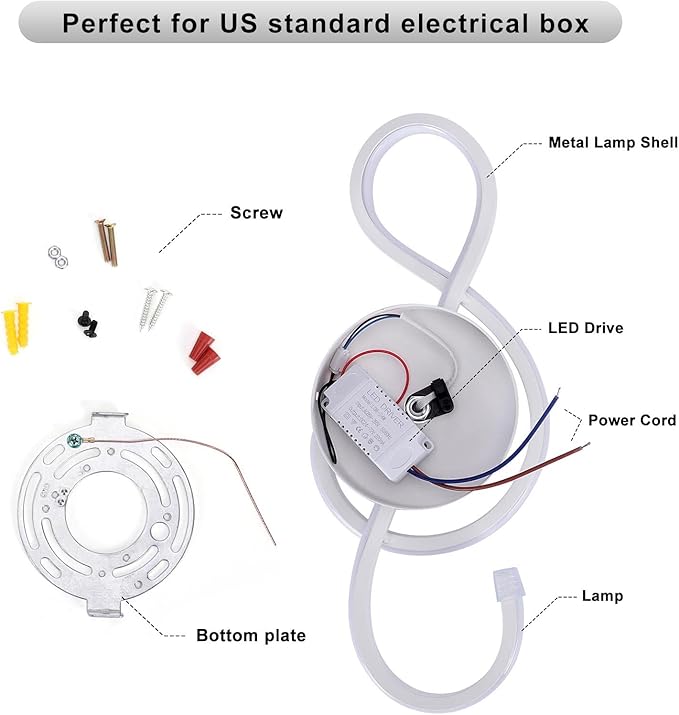 - [Creative Shape] The shape of the musical symbol is fitted with a base suitable for American junction boxes, timeless minimalist design that perfect combination with modern, urban, minimalist and other decoration styles for the living room and bedroom.