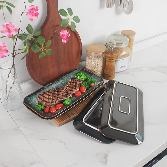 - Our dinnerware makes a great gift set, 12.4" x 6.2" serving plate, whether it's a gift for yourself or a loved one, our packaging ensures it arrives in perfect condition the moment it arrives at your door Leave it to you.