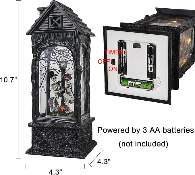 - WHAT YOU WILL GET: You will get 1 pcs Water Snow Globe Lantern in black color finish, which can be operated by USB cord (included) or 3 AA batteries( not included). Product dimension is 4.3" x 4.3" x 10.7"