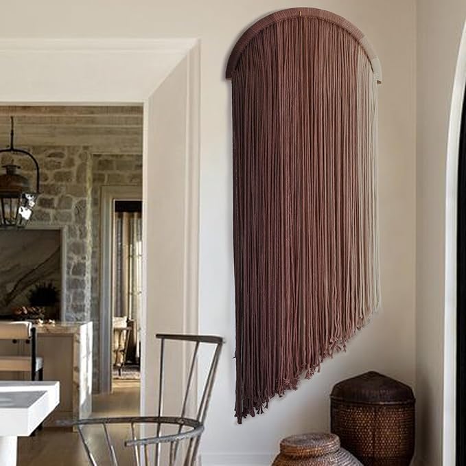 - USE: With this dyed yarn wall hanging, you will instantly add a boho look to your room and it will really warm the space. Will add interest to any part of your home, especially the preferred backdrop for headboards, living rooms, gallery walls, windows, above unused fireplaces, above cribs, nurseries, weddings and parties, cafes or studios.