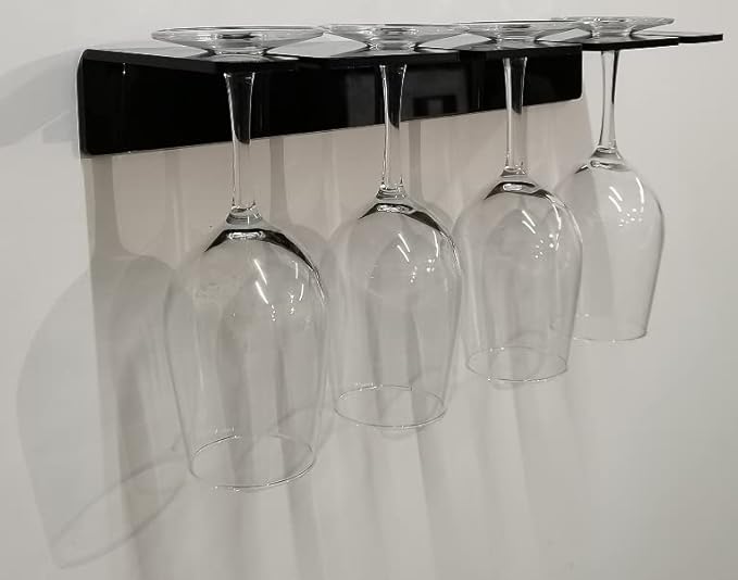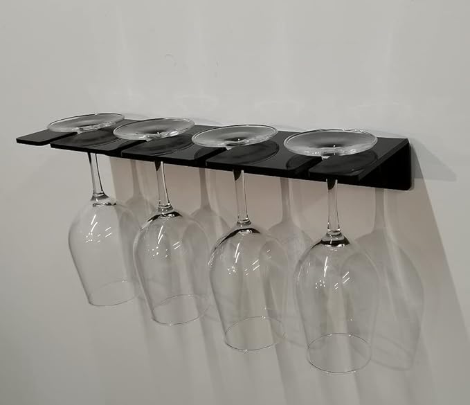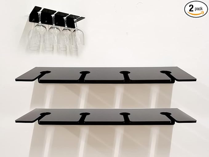 - ★Space-saving: Stylish and lightweight wall-mounted drink holder is a unique storage tool for kitchen cabinets. Mounted on the wall, this shelf elegantly displays the goblets. Simply hang it on the kitchen wall, home bar cabinet, living or dining room, cellar, pantry, party room, near the sink (as a wine rack) or near the bathtub.