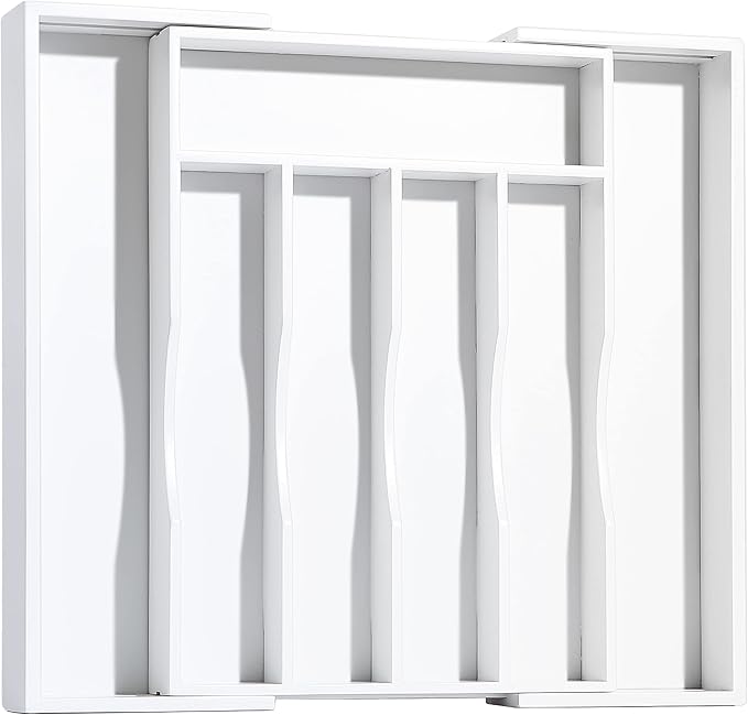 Bellsal White Silverware Organizer Kitchen Drawer Organizer Expandable Bamboo Utensil Holder Cutlery Tray for Kitchen Utensil and Flatware Bedroom Office