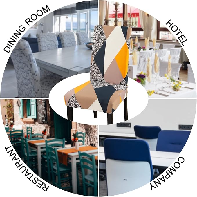 JQinHome Dining Chair Covers Set of 4,Magic Cube High Stretch Removable Washable Parsons Chair Slipcover for Dining Room Home Party Hotel Wedding Ceremony (Geometric Patterns)