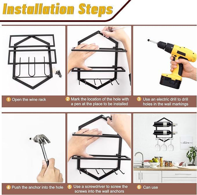 - 【Easy to Install】Enjoy quick and easy installation of your wall wine bottle and glass holder with the easy to use mounting hardware included, which can decorate any wall space and has an important decorative effect.