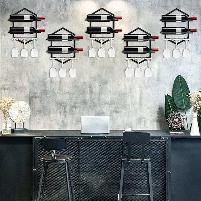 - 【2-IN-1 Wine Display Rack】Our wall mounted wine bottle holder presents your precious wine bottles, goblets in a stylish way, shows a unique artistic atmosphere. Wine rack holds 2 bottles of wine, or champagne, and 3-6 goblets.