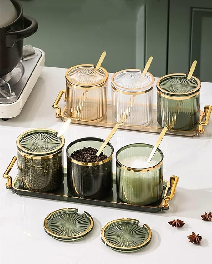 - ▲▲【Material】: Transparent thickened acrylic condiment container, made of PP plastic, equipped with 3 metal spoons and a practical tray with a handle, sturdy and corrosion-resistant, it can be effectively stored while decorating home life, adding color