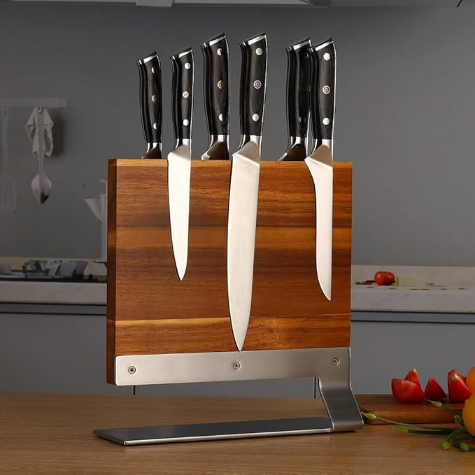 - PREVENT DULL EDGES: Magnetic knife holders are safe for blades you plan to store on the blade holder because the blades only come in contact with the wood. Wipe off water before placing items on it.