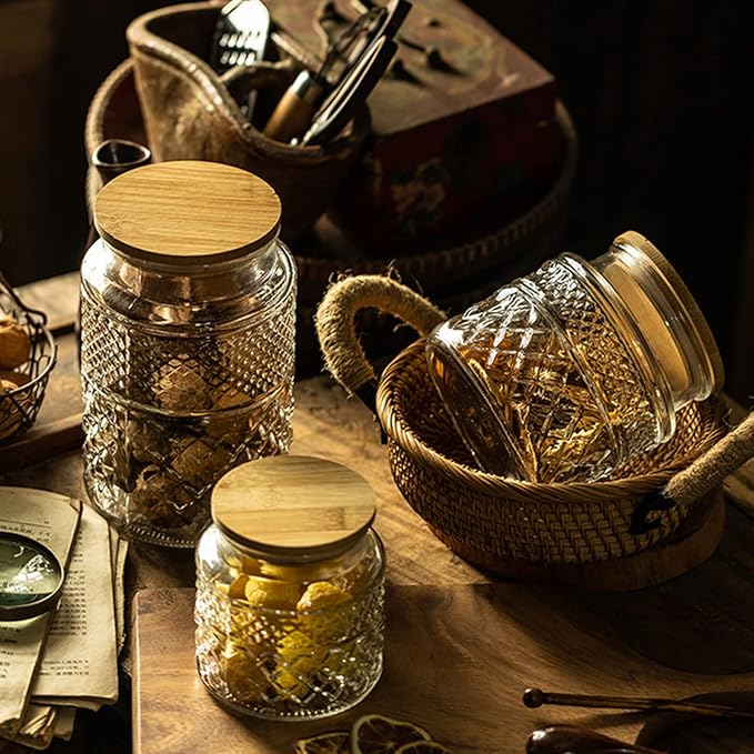 - 【Vintage Decorative Jar】 The storage containers are made of premium unique pattern glass, thick glass coffee bean storage jar is not deformed, not stained, durable and stable placement.