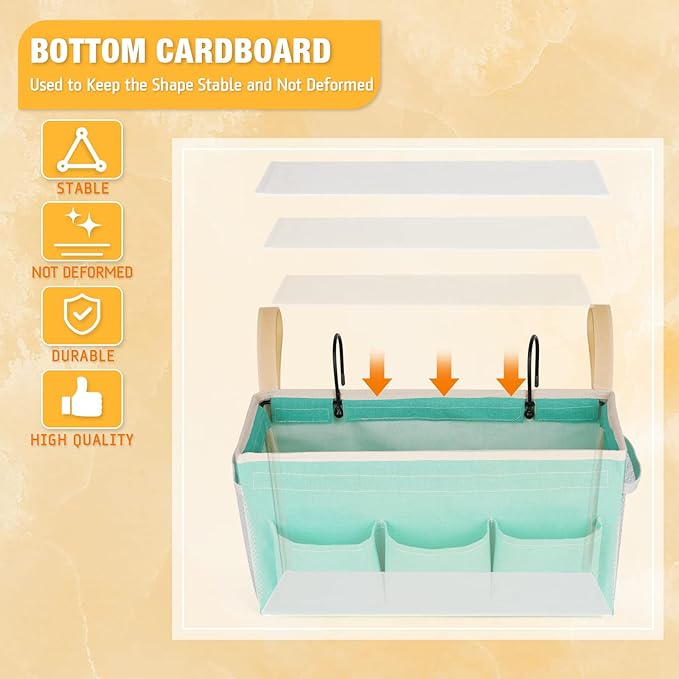 Bedside Caddy Bedside Organizer Bedside Storage Caddy with Fixed Straps and Water Bottle Holder for Home College Dorm Bunk Bed Hospital Bed Crib Bed Rails (2pcs Green)
