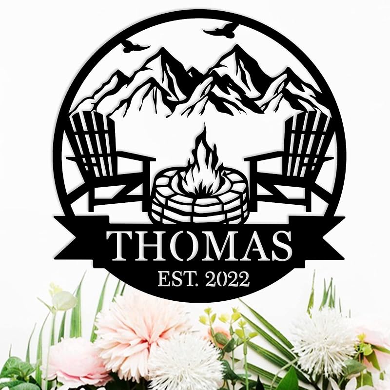 Personalized Campfire Family Name Sign, Monogram Name Camping Sign, Custom Campfire Sign, Campsite Sign, Mountain Campfire Monogram Sign, Campfire Personalized Metal Sign, Last Name Sign