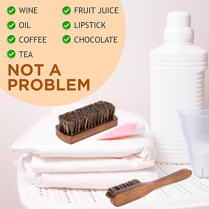 Horsehair Laundry Stain Brushes Set 2pcs by TAKAVU, Natural Soft Bristle for Scrubbing Out Tough Stains on Delicate Fabrics Knits Cotton Leather Washable Fabrics