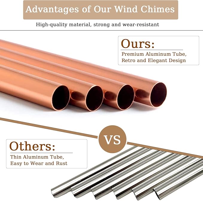 - PREMIUM QUALITY AND RUSTPROOF-- Brass butterfly wind chimes are made of high-quality aluminum and nylon rope. Aluminum-brass tubes provide a longer resonance time for a clear and lasting musical melody anywhere. Corrosion-resistant coating of the surface that makes it higher quality and not easy to rust outdoors. Excellent in endurance and highly resistant against wear.