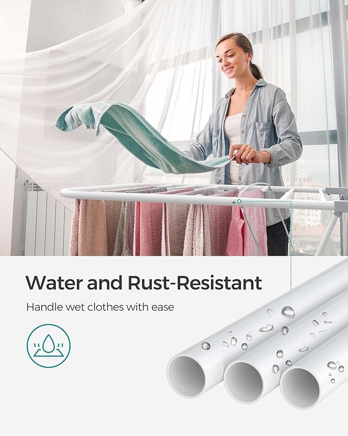 - [Rust-Resistant & Heavy-Duty] Boasting thick steel tubes with a specially treated finish and durable plastic connectors, this clothes drying rack is capable of holding up to 55 lb. You won't have to worry about it buckling or rusting over time