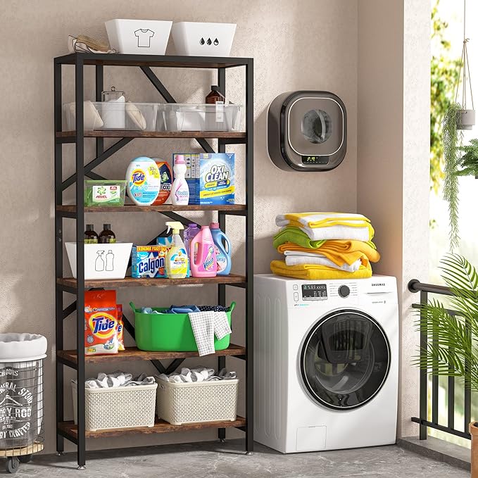 - [6-Tier Ample Storage Space]: Designed with 6-tier structure, and with the size of 70.87’’H X 31.5’’W X 11.81’’D, this tall bookshelf fits perfectly with all vertical walls and maximizes the vertical storage space to provide sufficient storing space for your various organization and display needs, keeping your room tidy, well organized and space saving. Open shelves design also maximizes the storage capacity.