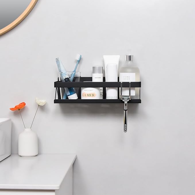 - 【Package Details】Size: 1pcs of rack in 12.2inch * 4.2 inch * 3.5inch, and 1pcs of rack in 12.6inch * 4.3 inch * 3.5inch,, paste film * 2pcs, stainless steel hooks * 2pcs.