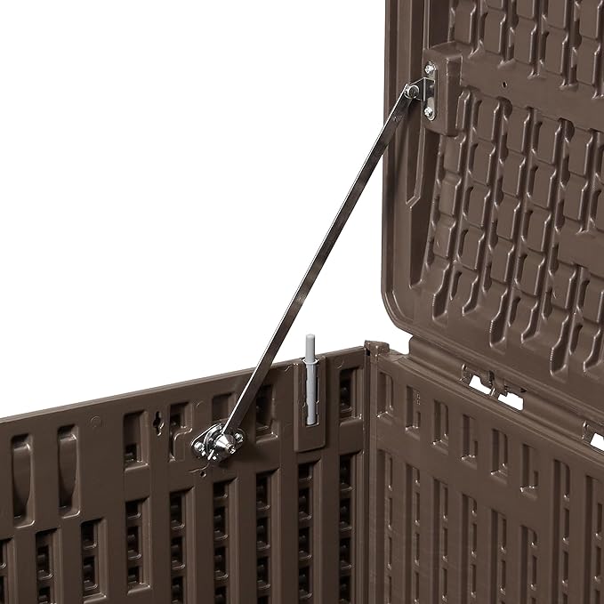 - ELEGANT STYLE: The charming wicker pattern in a brown finish complements various outdoor decors, adding a touch of sophistication to your patio storage, garden, or backyard area