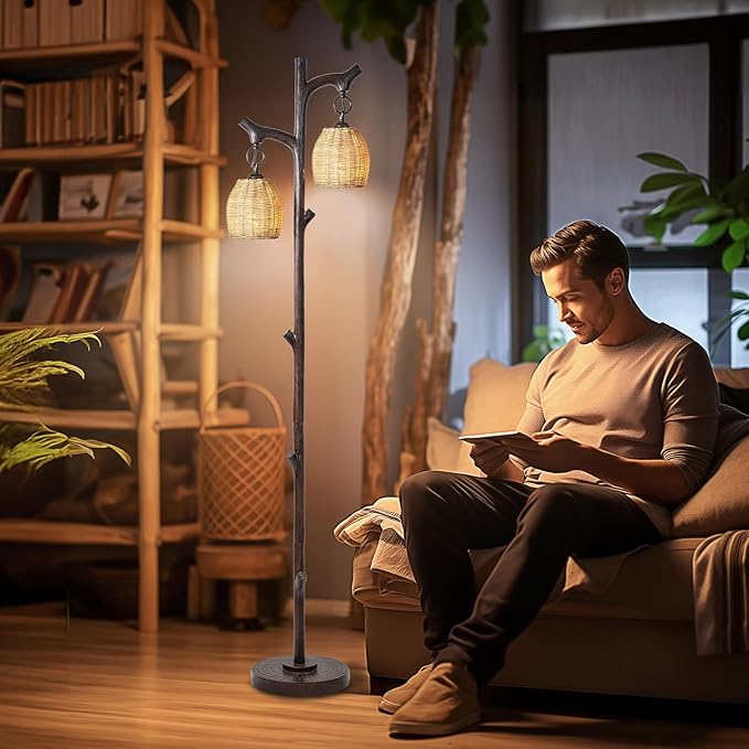 - Two wicker drum shade strip lamp body light sources are suspended from the classic and elegant tree-shaped main light stand, when you are relaxing on sofas, chaise long use and reading chairs, you will feel like you are in a natural tree Underneath, enjoy the serenity of nature, in addition to bright, high-intensity task lighting, it also provides warm light without taking up too much space, ideal for small rooms such as children's rooms, guest rooms, offices, etc.