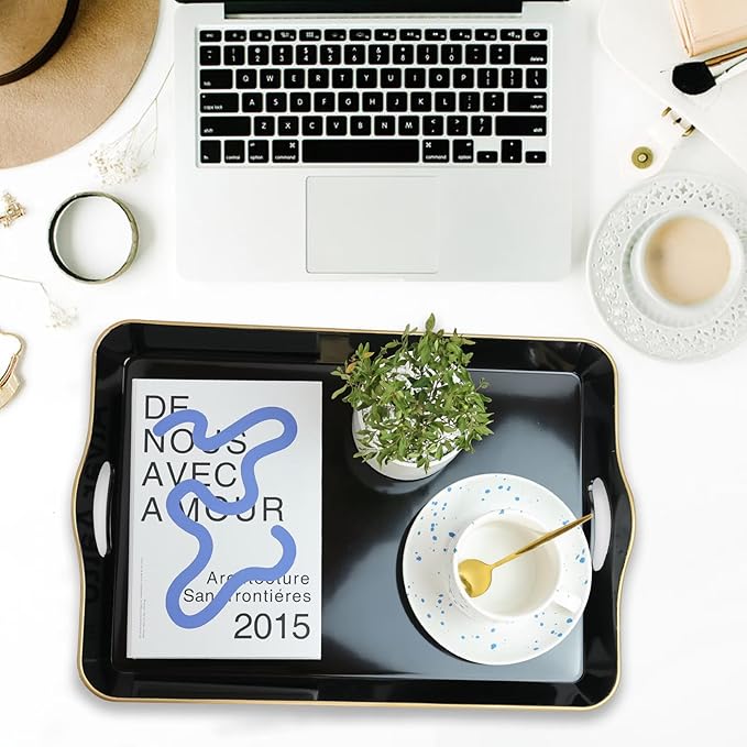 - Unique: Beautiful decorating trays with a glossy finish, giving them unique look appeal that adds to the home's charm. The organizer tray may also be used as a storage bin for small items like keys or TV remotes