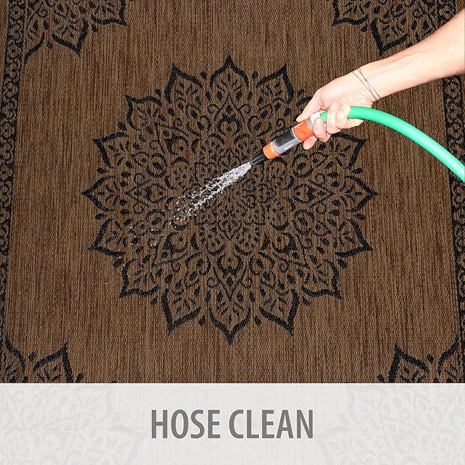 CAMILSON Outdoor Rug 8x10 Medallion Nut Brown Black Modern Area Rugs for Indoor and Outdoor Patios, Kitchen and Hallway Rug, Washable Porch Deck Outside Carpet (8 x 10)
