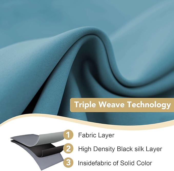 - MULTIPLE FUNCTIONS: These soft and durable curtains are made by innovative technology durable yarn, high performance on room darkening, thermal insulated, noise reducing, energy saving / efficiency and privacy protection