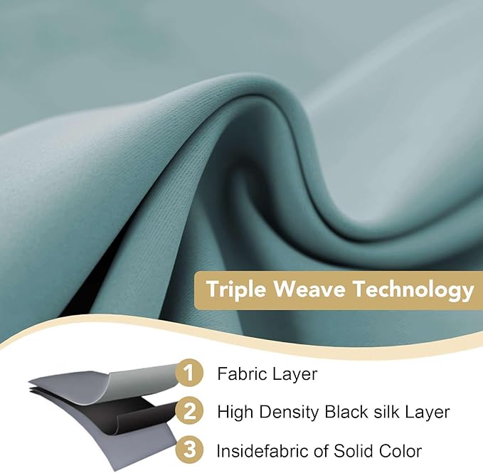 - MULTIPLE FUNCTIONS: These soft and durable curtains are made by innovative technology durable yarn, high performance on room darkening, thermal insulated, noise reducing, energy saving / efficiency and privacy protection