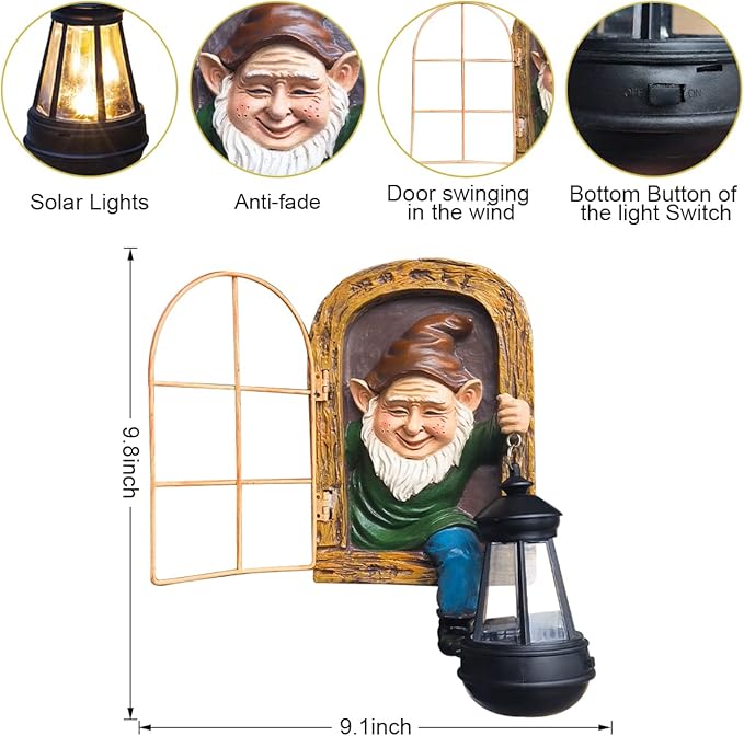- 🌳 UNIQUE DESIGN SIZE - The swinging window adds a touch of realism to the outdoor gnome's design, as it appears as if he's climbing out of the window in search of freedom. Its optimal size of 5.74” x 9.84 ”x 3.54” fits most garden trees perfectly, adding a touch of charm to your outdoor space.