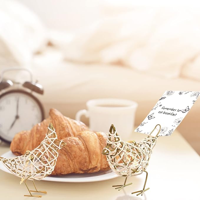 White Woven Bird Duo - Metal & Rattan Tabletop Sculptures, Modern Boho Decor with Detachable Memo Clips and Christmas Ornament (6x5.5x2.3in)