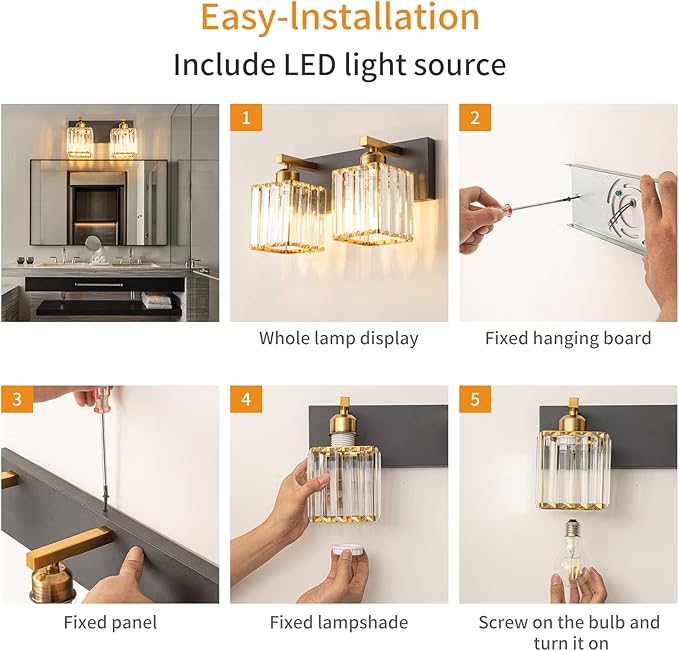 - [Easy Installation] This is designed for American Standard junction boxes and does not require complicated installation procedures. All required parts are included in the package and extra replacement crystal strips are available. Note: For your safety, please install the vanity light under the guidance of an electrician.